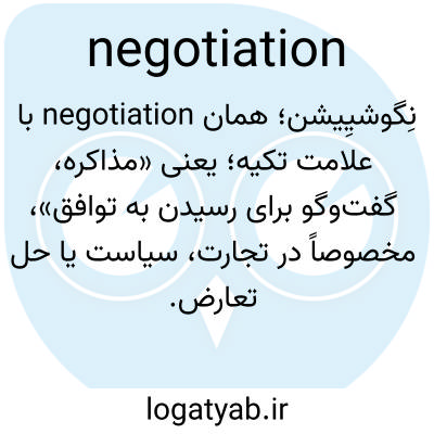 نِگوشیِیشن؛ همان negotiation با علامت تکیه؛ یعنی «مذاکره، گفت‌وگو برای رسیدن به توافق»، مخصوصاً در تجارت، سیاست یا حل تعارض.