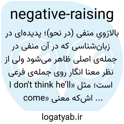 📌 دستور زبان گشتاری، قاعدهای که یک عنصر منفی را از بند متمم افعال خاصی، مانند think، به بند اصلی منتقل میکند، مانند مشتق شدن عبارت He doesn't think that he'll finish