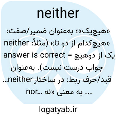 📌 نه هیچ کدام، در مورد افراد یا چیزهای مشخص شده (که معمولاً با nor دنبال میشود).