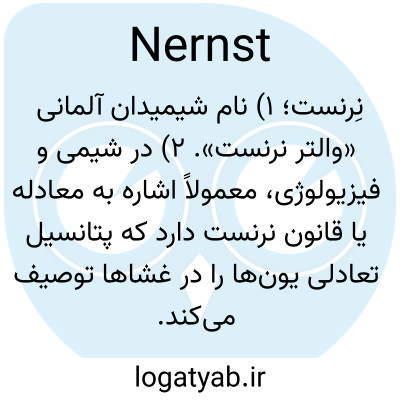 نِرنست؛ ۱) نام شیمیدان آلمانی «والتر نرنست». ۲) در شیمی و فیزیولوژی، معمولاً اشاره به معادله یا قانون نرنست دارد که پتانسیل تعادلی یون‌ها را در غشاها توصیف می‌کند.