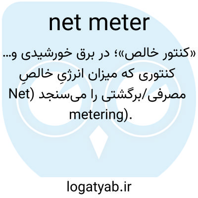«کنتور خالص»؛ در برق خورشیدی و… کنتوری که میزان انرژیِ خالصِ مصرفی/برگشتی را می‌سنجد (Net metering).