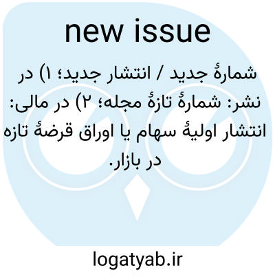 شمارهٔ جدید / انتشار جدید؛ ۱) در نشر: شمارهٔ تازهٔ مجله؛ ۲) در مالی: انتشار اولیهٔ سهام یا اوراق قرضهٔ تازه در بازار.