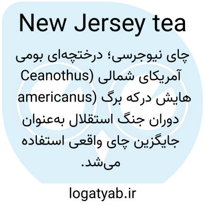 📌 درختچه‌ای در آمریکای شمالی، به نام Ceanothus americanus، از خانواده‌ی سنجد تلخ، که برگ‌های آن در طول انقلاب آمریکا به عنوان جایگزین چای استفاده می‌شد.