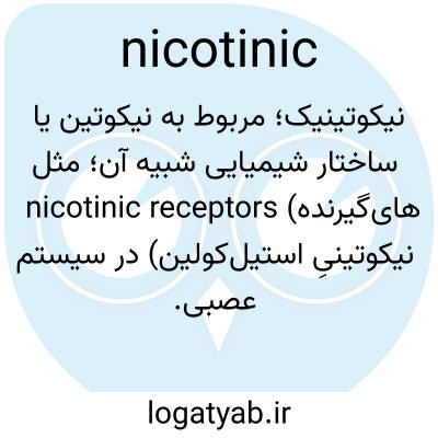 نیکوتینیک؛ مربوط به نیکوتین یا ساختار شیمیایی شبیه آن؛ مثل nicotinic receptors (گیرنده‌های نیکوتینیِ استیل‌کولین) در سیستم عصبی.