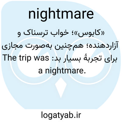 «کابوس»؛ خواب ترسناک و آزاردهنده؛ هم‌چنین به‌صورت مجازی برای تجربهٔ بسیار بد: The trip was a nightmare.