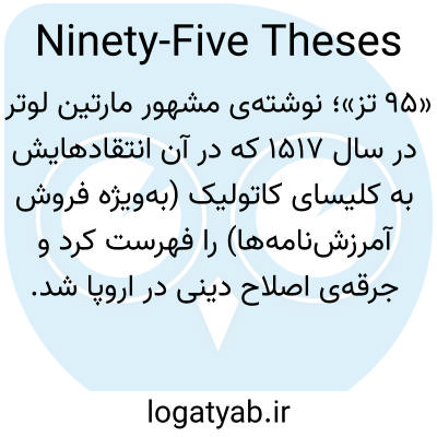 📌 تزهای لوتر علیه فروش آمرزشنامه در کلیسای کاتولیک روم، که توسط او در ۳۱ اکتبر ۱۵۱۷ بر سر در کلیسایی در ویتنبرگ نصب شد.