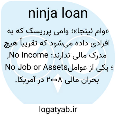«وام نینجا»؛ وامی پرریسک که به افرادی داده میشود که تقریباً هیچ مدرک مالی ندارند: No Income, No Job or Assets؛ یکی از عوامل بحران مالی ۲۰۰۸ در آمریکا.
