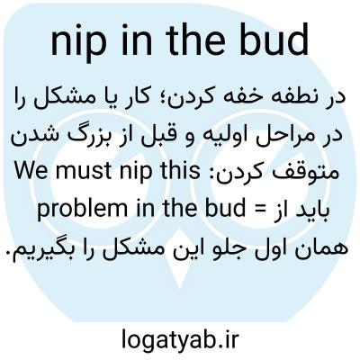 در نطفه خفه کردن؛ کار یا مشکل را در مراحل اولیه و قبل از بزرگ شدن متوقف کردن: We must nip this problem in the bud = باید از همان اول جلو این مشکل را بگیریم.