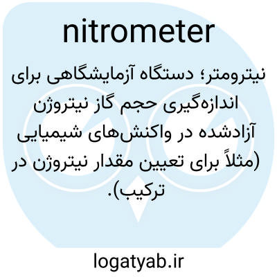 نیترومتر؛ دستگاه آزمایشگاهی برای اندازه‌گیری حجم گاز نیتروژن آزادشده در واکنش‌های شیمیایی (مثلاً برای تعیین مقدار نیتروژن در ترکیب).