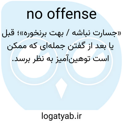 📌 لطفا احساس توهین نکنید، منظورم این نیست که به شما توهین کنم، همانطور که در No offensive آمده است، اما فکر میکنم اشتباه میکنید. این عبارت که اولین بار در سال ۱۸۲۹ ثبت شده است، عموماً با عبارتی همراه است که میتواند توهینآمیز تلقی شود اما مانند مثال، قرار نیست توهینآمیز باشد.