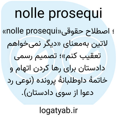 «nolle prosequi»؛ اصطلاح حقوقی لاتین به‌معنای «دیگر نمی‌خواهم تعقیب کنم»؛ تصمیم رسمی دادستان برای رها کردن اتهام و خاتمهٔ داوطلبانهٔ پرونده (نوعی رد دعوا از سوی دادستان).