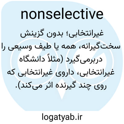 غیرانتخابی؛ بدون گزینش سخت‌گیرانه، همه یا طیف وسیعی را دربرمی‌گیرد (مثلاً دانشگاه غیرانتخابی، داروی غیرانتخابی که روی چند گیرنده اثر می‌کند).