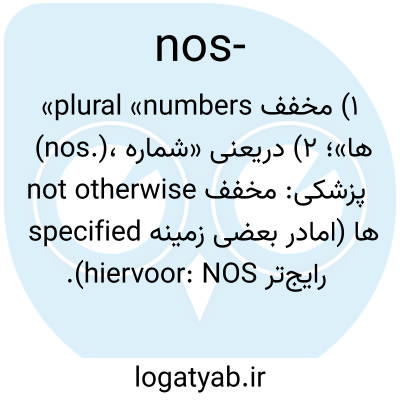 ۱) مخفف plural «numbers» (nos.)، یعنی «شماره‌ها»؛ ۲) در پزشکی: مخفف not otherwise specified در بعضی زمینه‌ها (اما رایج‌تر hiervoor: NOS).
