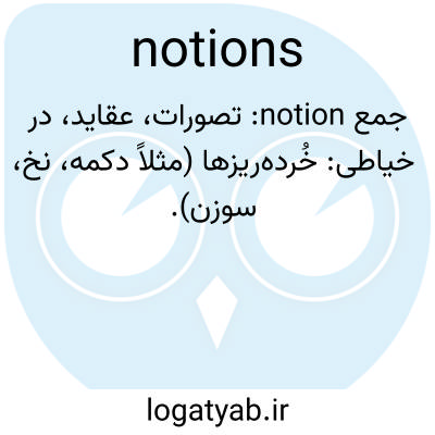 جمع notion: تصورات، عقاید، در خیاطی: خُرده‌ریزها (مثلاً دکمه، نخ، سوزن).