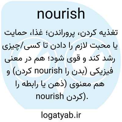 📌 با غذا یا مواد مغذی تغذیه کردن؛ آنچه را که برای زندگی، سلامتی و رشد لازم است، تأمین کردن.