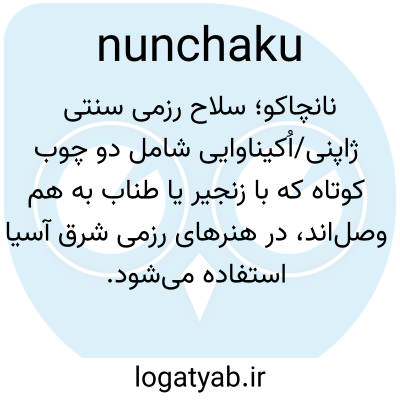 📌 گاهی اوقات نانچیکو. یک سلاح دستی ژاپنی برای دفاع در برابر حمله از جلو، متشکل از دو چوب سخت به طول یک فوت که توسط یک زنجیر یا طناب ضخیم که به اندازه عرض بدن کشیده میشود، به هم متصل شدهاند.