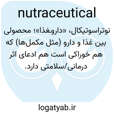 نوتراسوتیکال، «داروـغذا»؛ محصولی بین غذا و دارو (مثل مکمل‌ها) که هم خوراکی است هم ادعای اثر درمانی/سلامتی دارد.