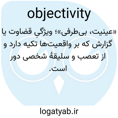 «عینیت، بی‌طرفی»؛ ویژگیِ قضاوت یا گزارش که بر واقعیت‌ها تکیه دارد و از تعصب و سلیقهٔ شخصی دور است.
