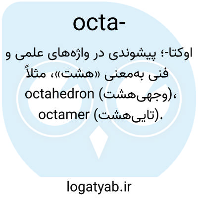 📌 یک شکل ترکیبی که در کلمات قرضی از یونانی و لاتین وجود دارد، که در آن به معنای «هشت» (هشت ضلعی؛ اکتااستایل) بود، بر اساس این مدل، در شکلگیری کلمات مرکب استفاده میشود، و در اصطلاحات شیمیایی به معنای «دارای هشت اتم» (هشت ظرفیتی) است.
