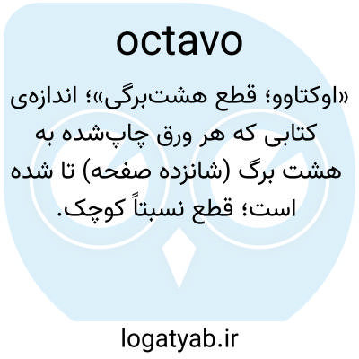 📌 کتابی با اندازه حدود 6 × 9 اینچ (16 × 23 سانتیمتر)، که با چاپ روی ورقهای تا شده به شکل 8 برگ یا 16 صفحه تعیین میشود. 8vo، 8°