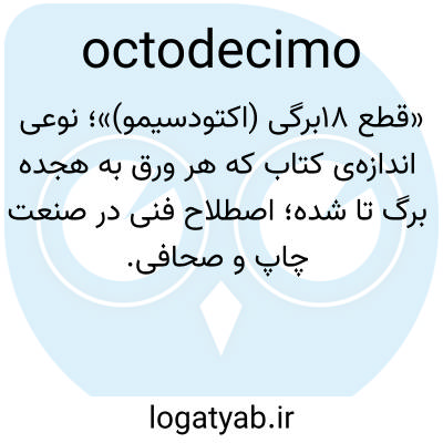 📌 کتابی با اندازه حدود 10 × 16 سانتیمتر (4 × 6 ¼ اینچ) که با چاپ روی ورقهای تا شده به شکل 18 برگ یا 36 صفحه تعیین میشود. 18 ماه، 18 درجه
