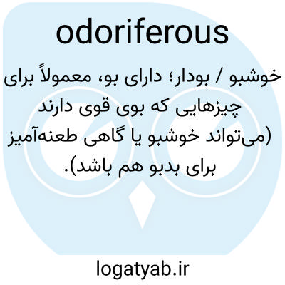 خوشبو / بودار؛ دارای بو، معمولاً برای چیزهایی که بوی قوی دارند (می‌تواند خوشبو یا گاهی طعنه‌آمیز برای بدبو هم باشد).