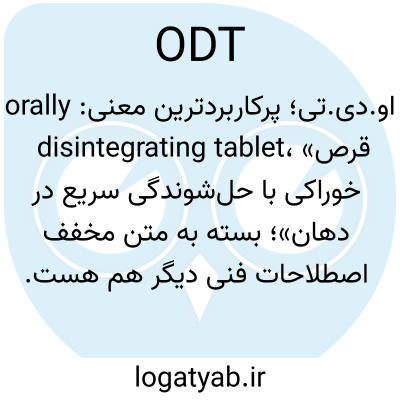 او.دی.تی؛ پرکاربردترین معنی: orally disintegrating tablet، «قرص خوراکی با حل‌شوندگی سریع در دهان»؛ بسته به متن مخفف اصطلاحات فنی دیگر هم هست.