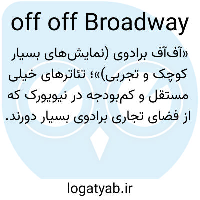 «آف‌آف برادوی (نمایش‌های بسیار کوچک و تجربی)»؛ تئاترهای خیلی مستقل و کم‌بودجه در نیویورک که از فضای تجاری برادوی بسیار دورند.
