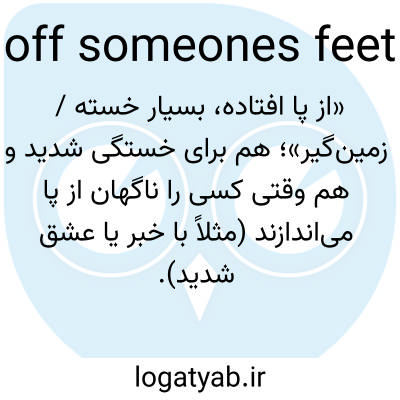 📌 . کسی را تا سر حد خستگی کار دادن، عجله کردن یا تحت فشار قرار دادن، مانند: با تمام مقدمات، آنها مرا از پا درآوردند، یا پیشخدمت‌ها از پا در آمدند. این عبارات اغراق‌آمیز به دویدن یا عجله کردن آنقدر زیاد که فرد زمین می‌خورد اشاره دارند. اولین مورد به اواسط دهه ۱۸۰۰ میلادی برمی‌گردد؛ دومی برای اولین بار در سال ۱۹۱۶ به عنوان عجله کردن ثبت شد.