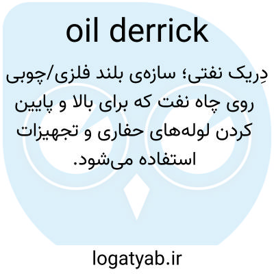 دِریک نفتی؛ سازه‌ی بلند فلزی/چوبی روی چاه نفت که برای بالا و پایین کردن لوله‌های حفاری و تجهیزات استفاده می‌شود.