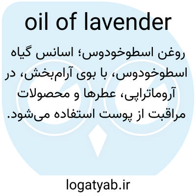 📌 روغن اساسی که از گلهای اسطوخودوس، به ویژه Lavandula angustifolia و L. stoechas، تقطیر میشود و در عطرسازی استفاده میشود.