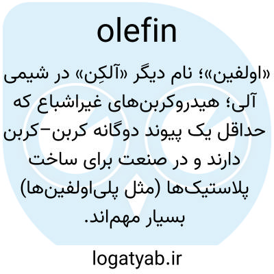 «اولفین»؛ نام دیگر «آلکِن» در شیمی آلی؛ هیدروکربن‌های غیراشباع که حداقل یک پیوند دوگانه کربن–کربن دارند و در صنعت برای ساخت پلاستیک‌ها (مثل پلی‌اولفین‌ها) بسیار مهم‌اند.