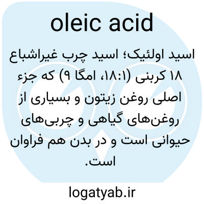 📌 اسید بیرنگ، بیبو، مایع، نامحلول در آب و غیراشباع، C18H34O2، که از پیه حیوانات و روغنهای گیاهی طبیعی به دست میآید و در آنها به صورت استر گلیسرول وجود دارد: عمدتاً در ساخت صابون، اولئاتهای تجاری و لوازم آرایشی استفاده میشود.
