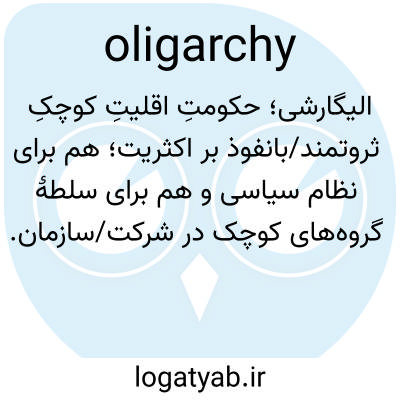 الیگارشی؛ حکومتِ اقلیتِ کوچکِ ثروتمند/بانفوذ بر اکثریت؛ هم برای نظام سیاسی و هم برای سلطهٔ گروه‌های کوچک در شرکت/سازمان.