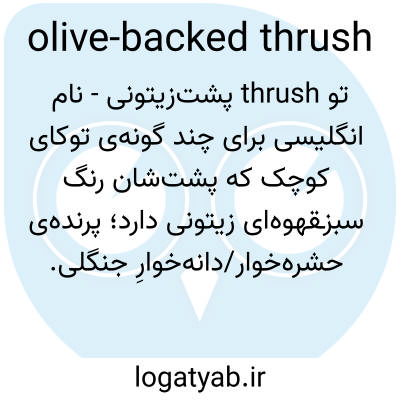تو thrush پشت‌زیتونی - نام انگلیسی برای چند گونه‌ی توکای کوچک که پشت‌شان رنگ سبزـقهوه‌ای زیتونی دارد؛ پرنده‌ی حشره‌خوار/دانه‌خوارِ جنگلی.
