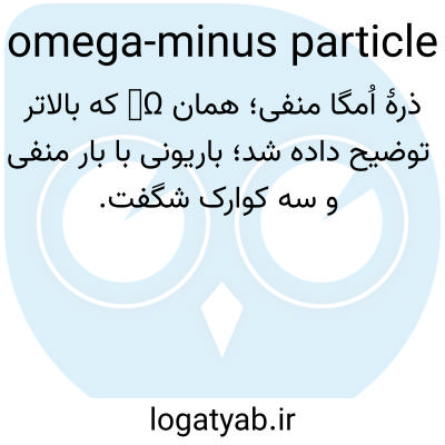 ذرهٔ اُمگا منفی؛ همان Ω⁻ که بالاتر توضیح داده شد؛ باریونی با بار منفی و سه کوارک شگفت.