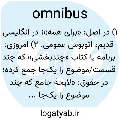 ۱) در اصل: «برای همه»؛ در انگلیسی قدیم، اتوبوس عمومی. ۲) امروزی: برنامه یا کتاب «چندبخشی» که چند قسمت/موضوع را یک‌جا جمع کرده؛ در حقوق: «لایحهٔ جامع که چند موضوع را یک‌جا می‌پوشاند».