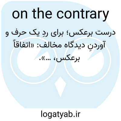 📌 برعکس است، مانند «آیا شانهاش درد میکند؟» - برعکس، همه چیز بهتر است، یا «ما فکر میکردیم اپرا را دوست نداری.» - برعکس، من عاشقش هستم. این عبارت که در ابتدا به صورت by یا for یا in the reverse به کار میرفت، به اواخر دهه ۱۳۰۰ میلادی برمیگردد؛ «on» از اواسط دهه ۱۸۰۰ میلادی استفاده شده است.