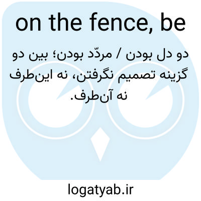 📌 همچنین، روی نرده بایستید. مردد باشید، متعهد نباشید، مانند اینکه «نمی‌دانم آیا به آنجا نقل مکان خواهم کرد یا نه؛ من هنوز روی نرده هستم، یا او در مورد ادغام روی نرده ایستاده است». این عبارت زیبا، با این مفهوم که می‌توان به هر دو طرف پرید، در ابتدا عمدتاً برای تعهدات سیاسی به کار می‌رفت. [اوایل دهه ۱۸۰۰]