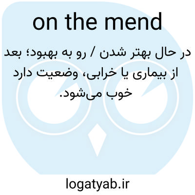 📌 بهبودی سلامتی، مثلاً شنیدهام آنفولانزا گرفتهای، اما خوشحالم که میبینم حالت رو به بهبود است. این اصطلاح از کلمه mend به معنای «ترمیم» استفاده میکند. [حدود ۱۸۰۰]
