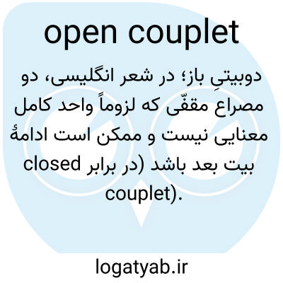 دو‌بیتیِ باز؛ در شعر انگلیسی، دو مصراع مقفّی که لزوماً واحد کامل معنایی نیست و ممکن است ادامهٔ بیت بعد باشد (در برابر closed couplet).