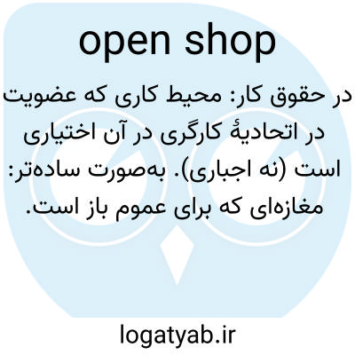 در حقوق کار: محیط کاری که عضویت در اتحادیهٔ کارگری در آن اختیاری است (نه اجباری). به‌صورت ساده‌تر: مغازه‌ای که برای عموم باز است.