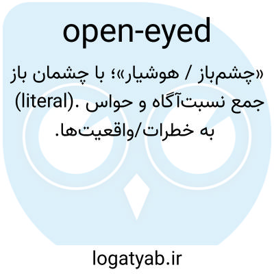 «چشم‌باز / هوشیار»؛ با چشمان باز (literal). آگاه و حواس‌جمع نسبت به خطرات/واقعیت‌ها.