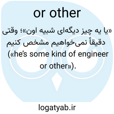 📌 یکی علاوه بر مورد ذکر شده. این عبارت برای تأکید بر کلمات نامعین که با some شروع میشوند، مانند someone، anyway، sometime، where استفاده میشود. برای مثال، Someone or other will be taking ticket at the door، یا I can't remember where I put the grass rake, but it's there where or else in the garage، یا Somehow or else be found one that matched. [حدود ۱۶۰۰]