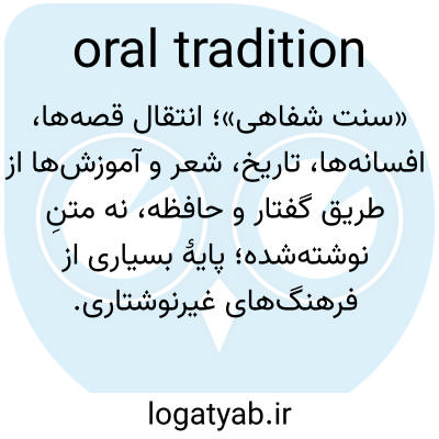«سنت شفاهی»؛ انتقال قصه‌ها، افسانه‌ها، تاریخ، شعر و آموزش‌ها از طریق گفتار و حافظه، نه متنِ نوشته‌شده؛ پایهٔ بسیاری از فرهنگ‌های غیرنوشتاری.
