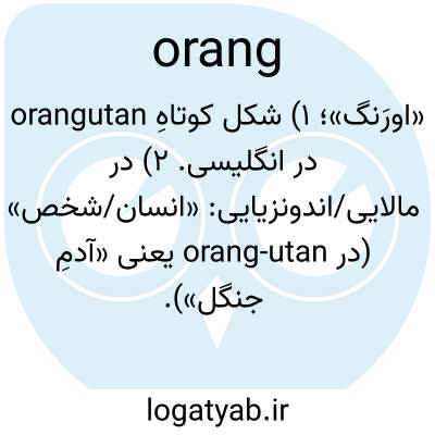 «اورَنگ»؛ ۱) شکل کوتاهِ orangutan در انگلیسی. ۲) در مالایی/اندونزیایی: «انسان/شخص» (در orang-utan یعنی «آدمِ جنگل»).