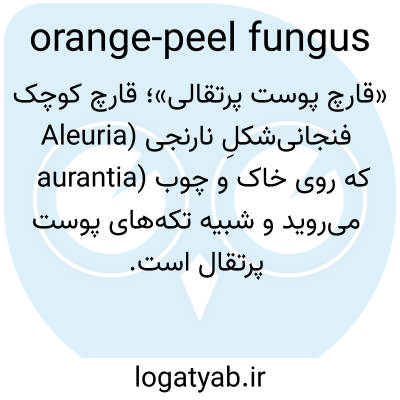«قارچ پوست پرتقالی»؛ قارچ کوچک فنجانی‌شکلِ نارنجی (Aleuria aurantia) که روی خاک و چوب می‌روید و شبیه تکه‌های پوست پرتقال است.