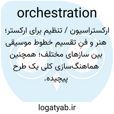 📌 آهنگسازی یا تنظیم موسیقی برای اجرا توسط یک گروه موسیقی یا ارکستر، یا موسیقیای که به این صورت ساخته یا تنظیم شده است.