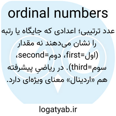 عدد ترتیبی؛ اعدادی که جایگاه یا رتبه را نشان می‌دهند نه مقدار (اول=first، دوم=second، سوم=third). در ریاضیِ پیشرفته هم «اردینال» معنای ویژه‌ای دارد.