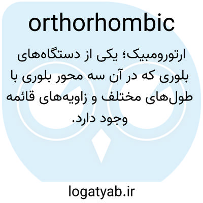 📌 مربوط به یا مربوط به یک سیستم تبلور که با سه محور نابرابر که با زاویه قائمه متقاطع هستند مشخص میشود؛ لوزی؛ سهمتری
